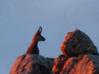 Wycieczka 12-godzinna na Herzogstand i Heimgarten. Koniec pracy o 17:50, autobus: 17:51, start na szlaku ok.19:00, Heimgarten 21:20, Herzogstand ok.1:20, zejście do Urfeldu (wioska poniżej góry) 7:30, początek łapania stopa: 7:39, Kochel: 8:56, początek pracy (Roberta: 8:15, moja: 9:00). Żadnego stresu i pośpiechu podczas przejścia między obydwoma szczytami (Heimgarten i Herzogstand). Napotkane zwierzęta: żaby i pająki, ah: była też salamandra i inne małe zwierzaki. Noc bezchmurna, gwieździsta, trochę mroźna (bez śpiworów :D), ale dało się przeżyć. Na Herzogstandzie zbudziliśmy coniektórych niemieckich "superalpinistów" ok. 1:20:) Na szczycie znajduje się wiatka, gdzie ów ludzie spali. Początkowo myślałam, że leży tam wałek od kanapy, później za plecami podniósł się gość w śpiworze i zacharczał :D Żeby nie budzić "alpinistów w śpiworach" udaliśmy się trochę dalej, by móc otworzyć puszkę z bawarskim trunkiem.